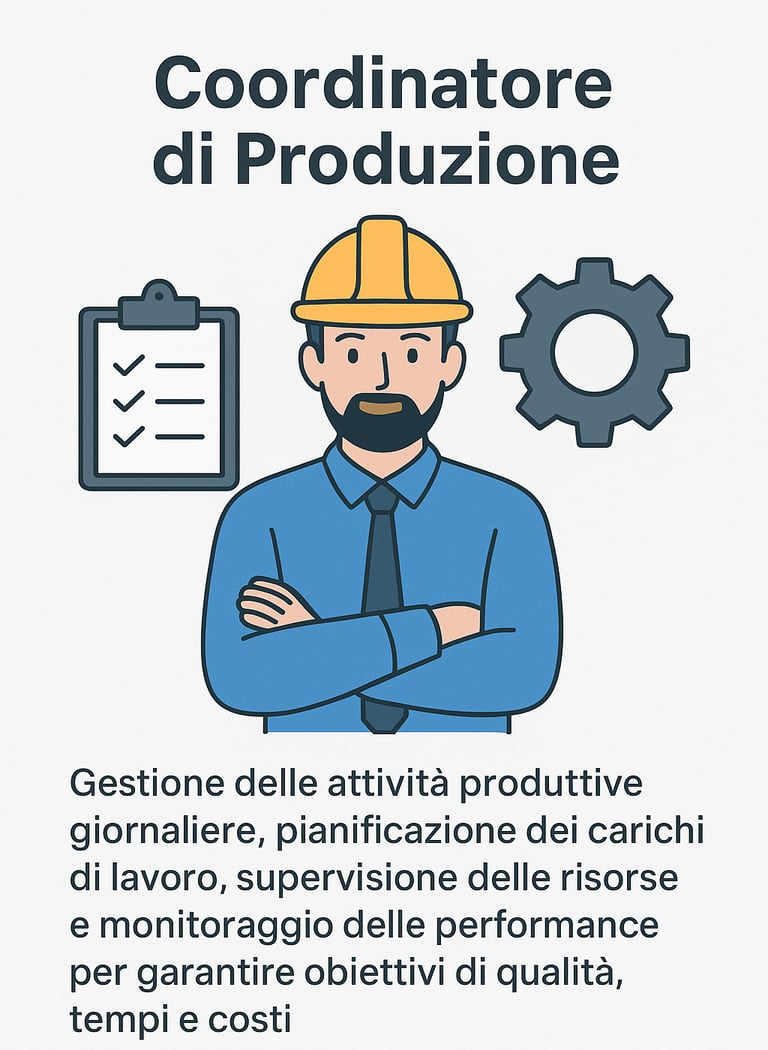 Gestisce risorse, processi e flussi produttivi garantendo efficienza, qualità e rispetto dei tempi.